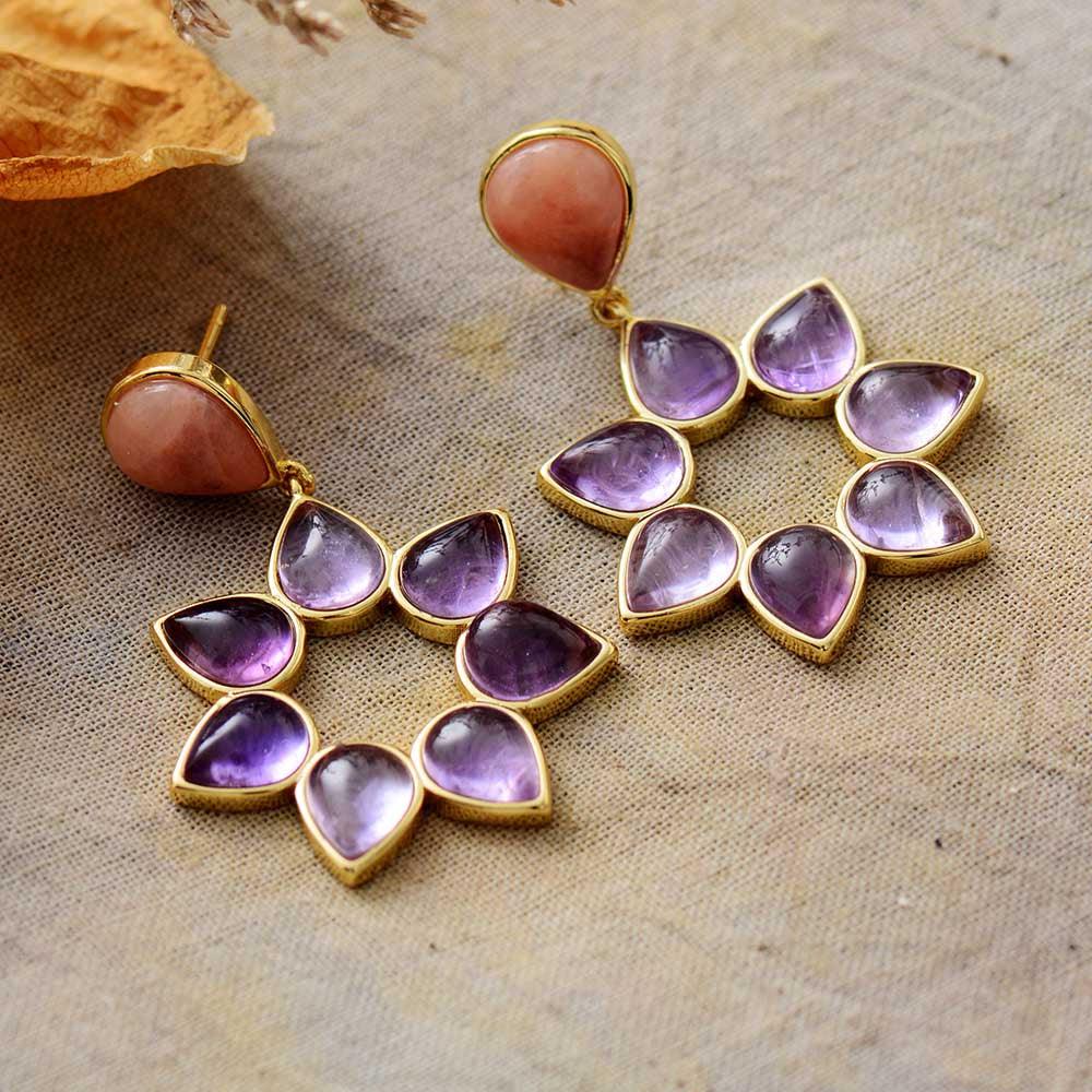 Orecchini "Coraggio di Fiori Selvatici" in Amazzonite e Ametista