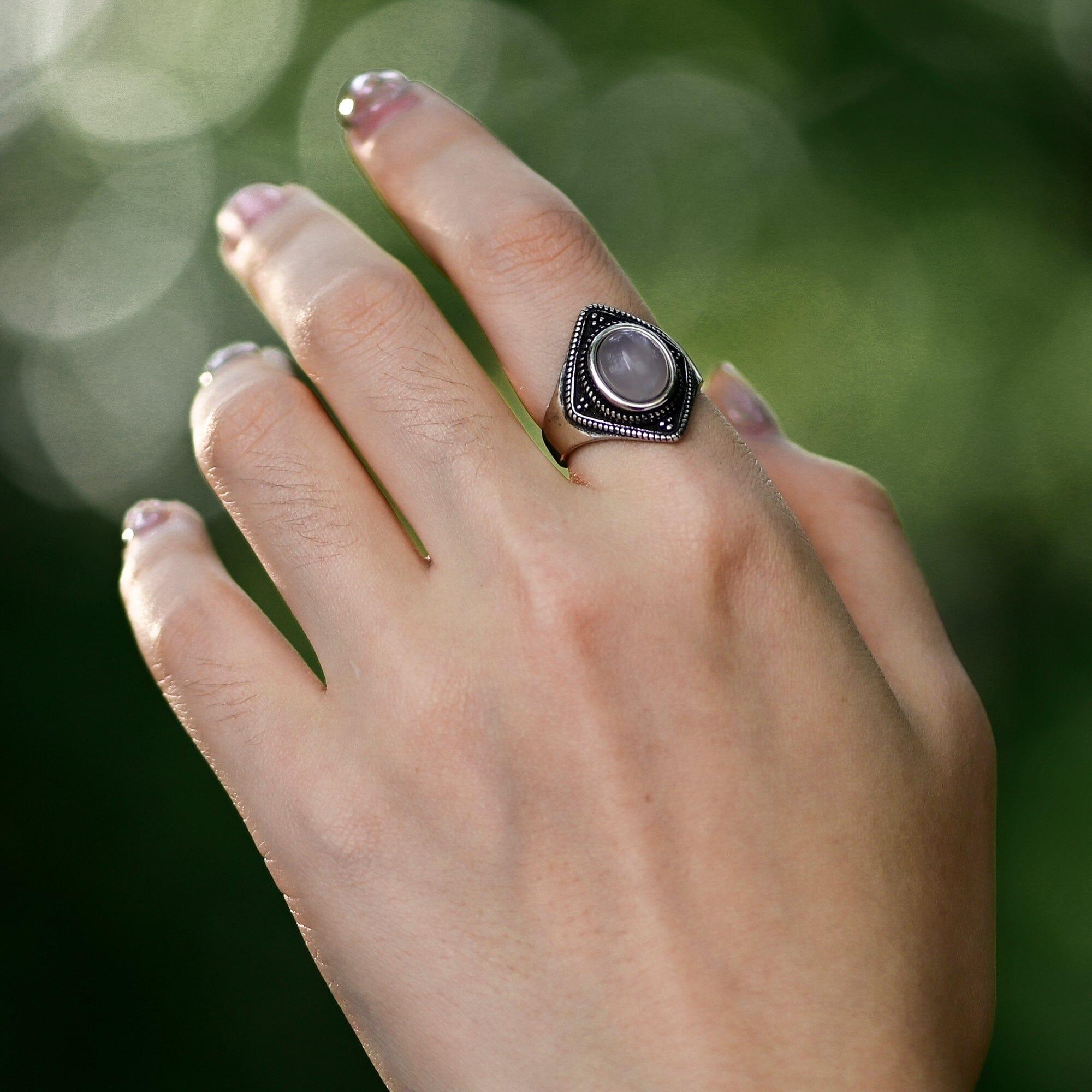 Anello Macha con Quarzo Rosa “Positività Senza Tempo”