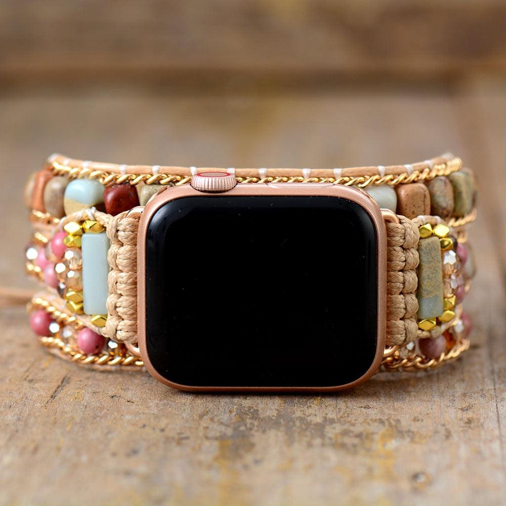 Cinturino Intrecciato per Apple Watch "Fusioni Terrestri" in Diaspro e Rodonite