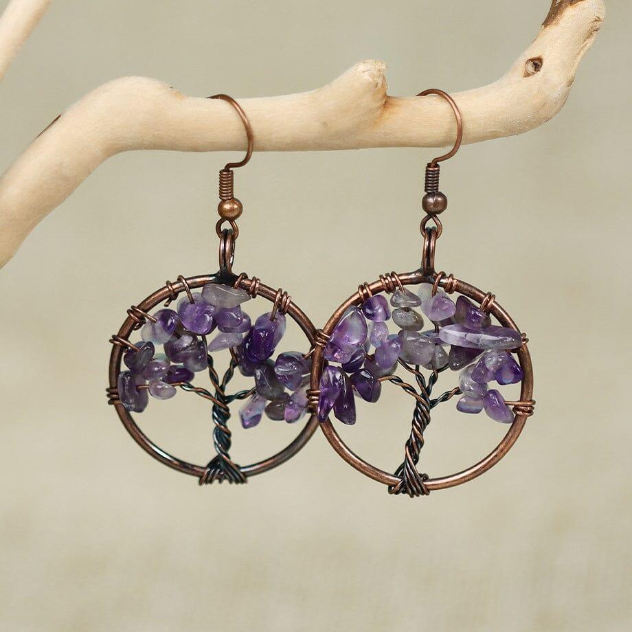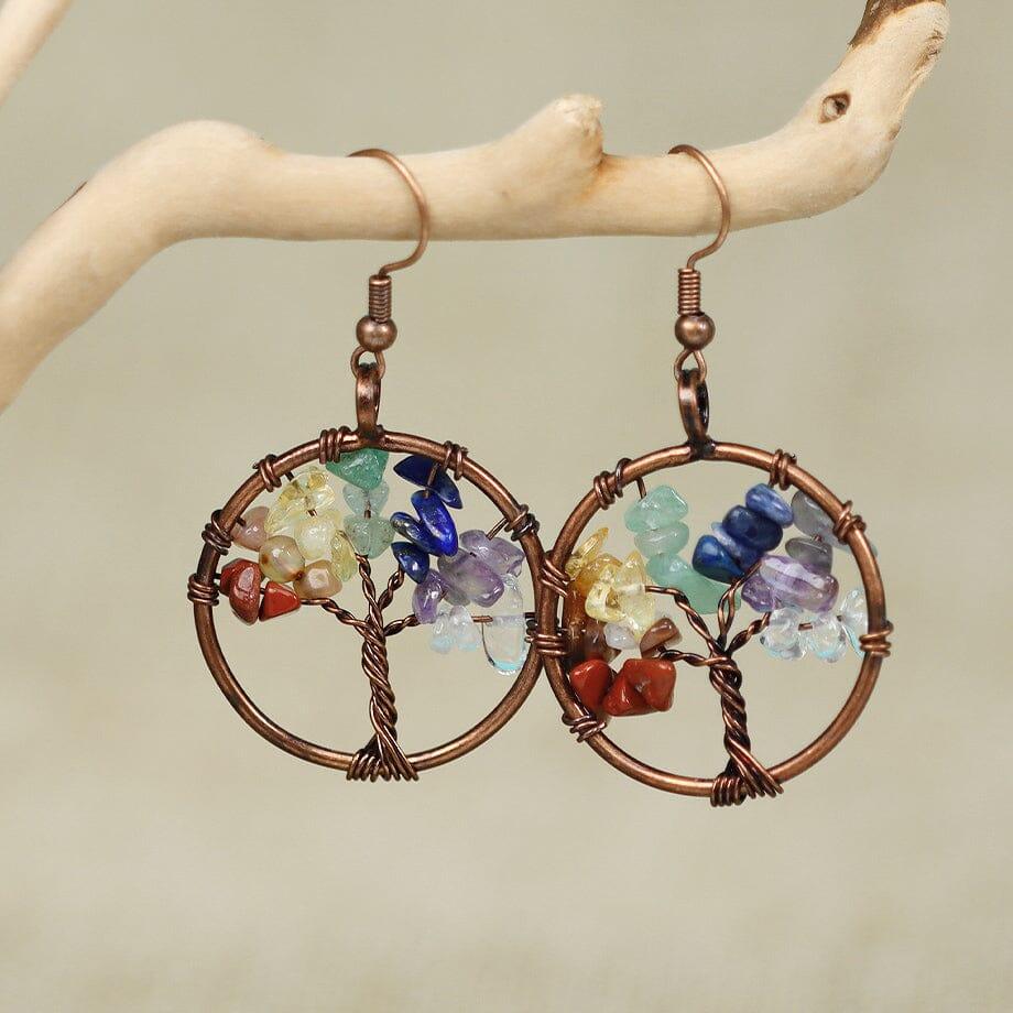 Orecchini in Rame con Albero della Vita in Pietra Naturale “Fioritura Spirituale”
