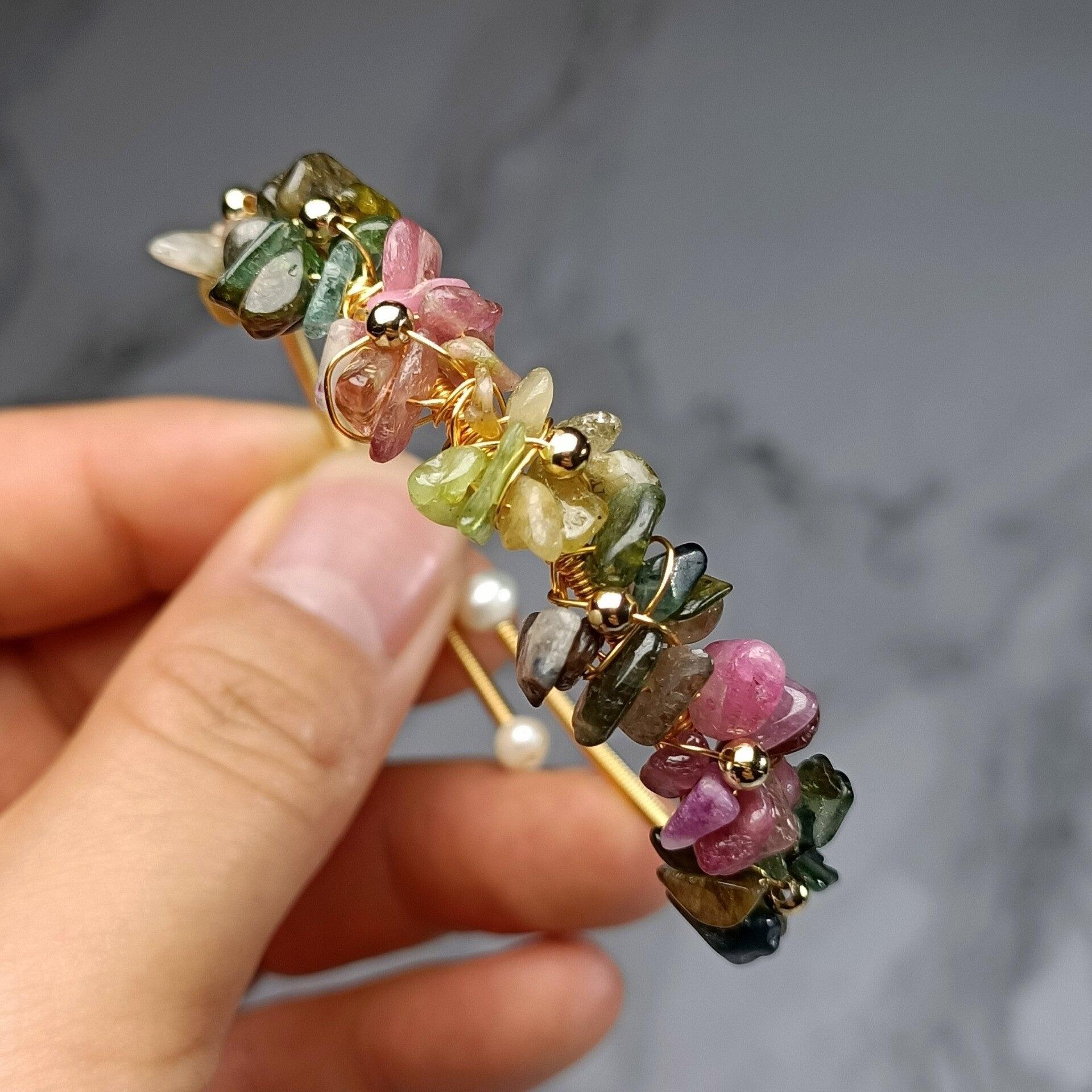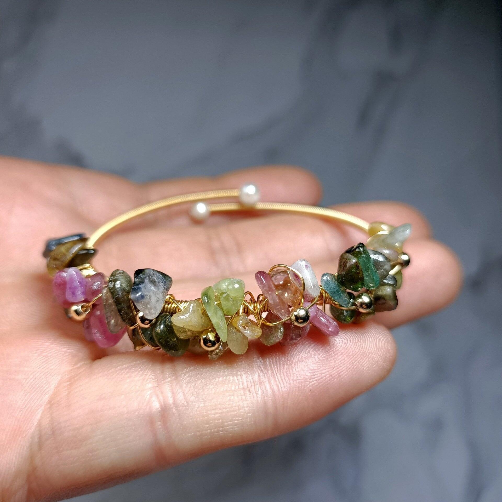 Bracciale "Eleganza Preziosa" con Perle e Tormalina Dorata