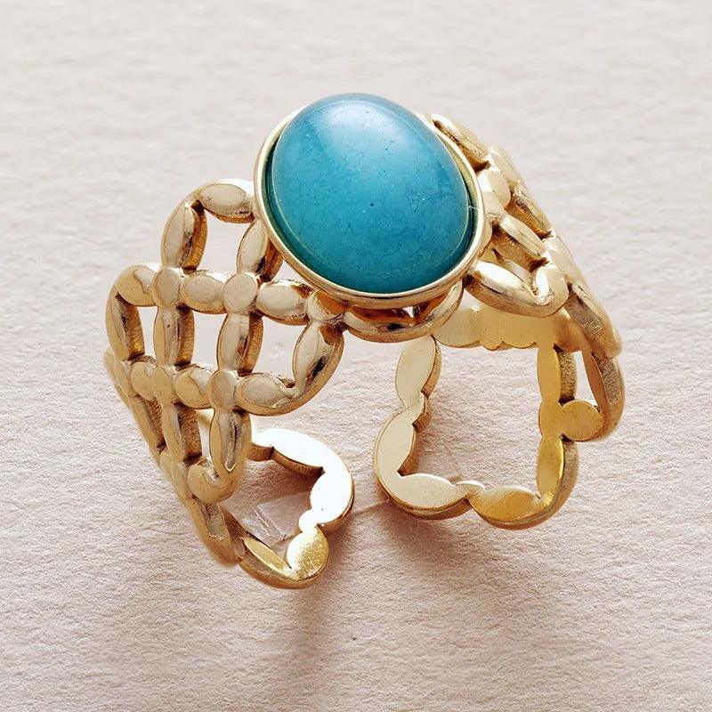 Anello "Floria" Boho Dichiarativo con Turchese