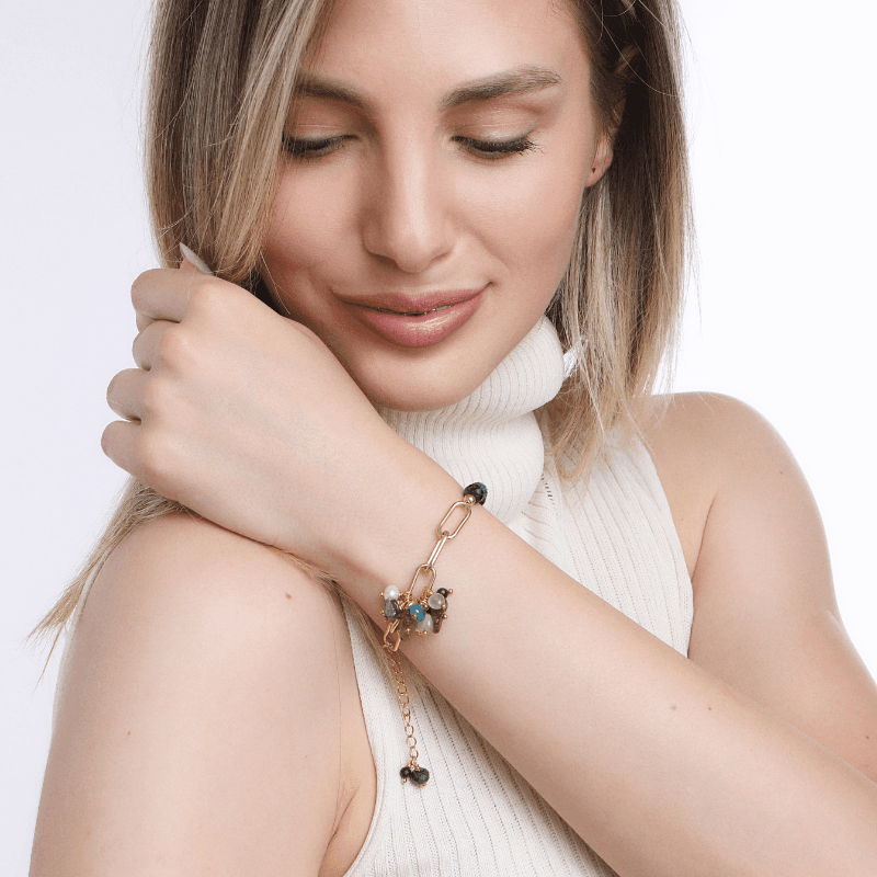 Bracciale "Sogni Sereni" in Oro con Apatite, Labradorite, Ametista e Perle