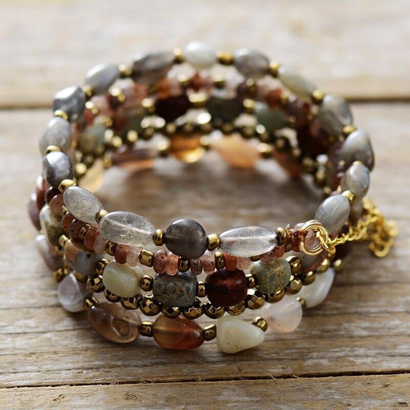 Collana "Spirito Bilanciato" in Diaspro, Labradorite e Agata