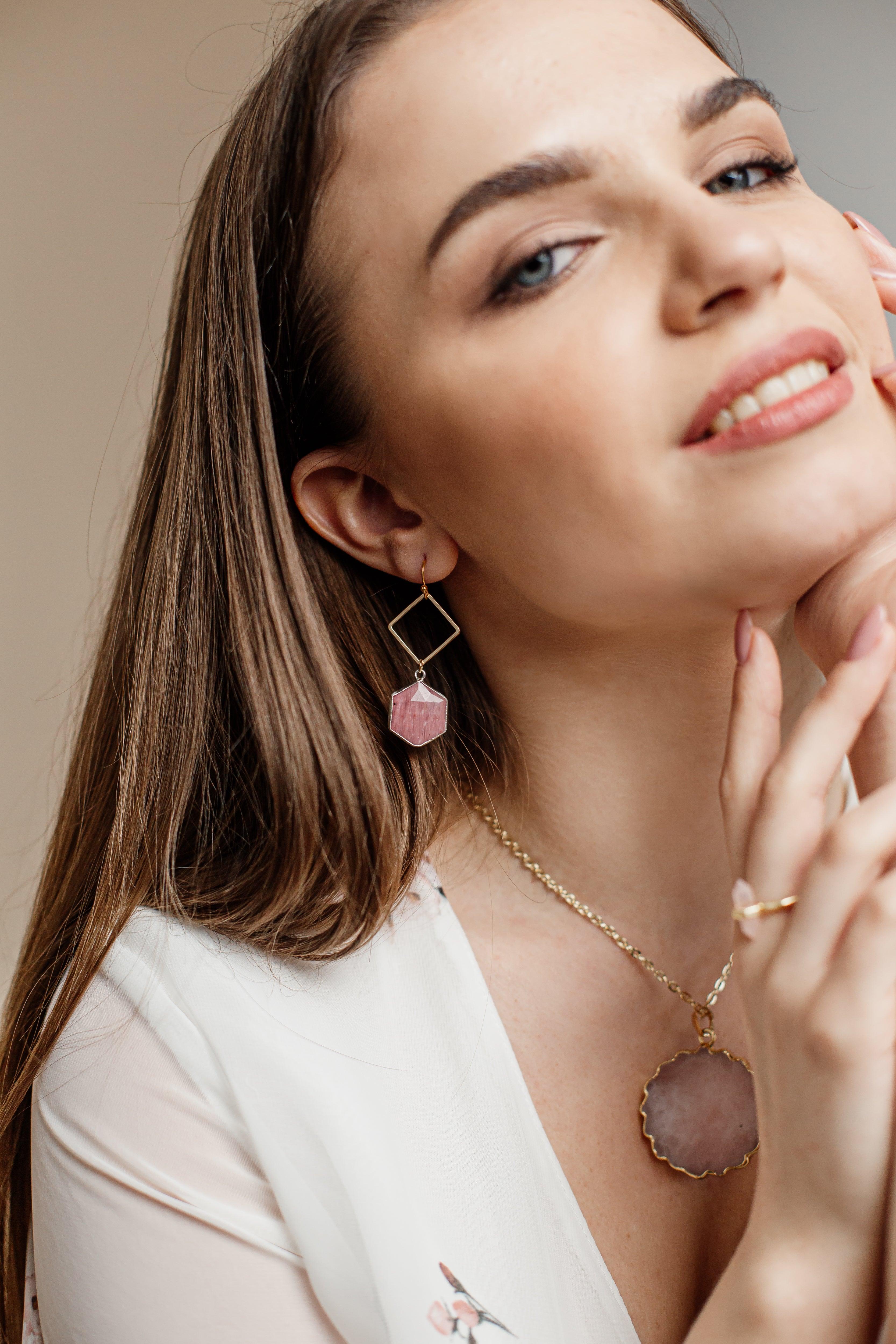 Orecchini Esagonali "Cura Affettuosa" in Rodonite