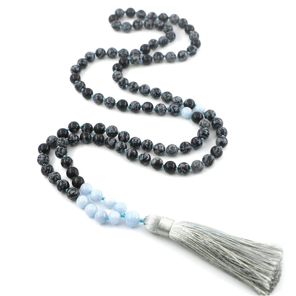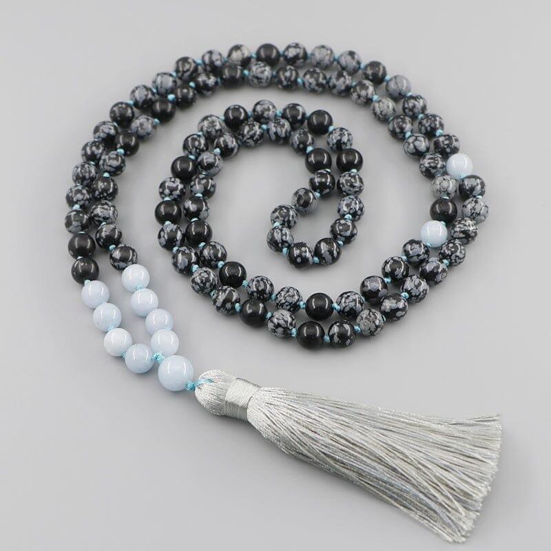 Collana Mala "Neve Celeste" con Acquamarine a Fiocco di Neve