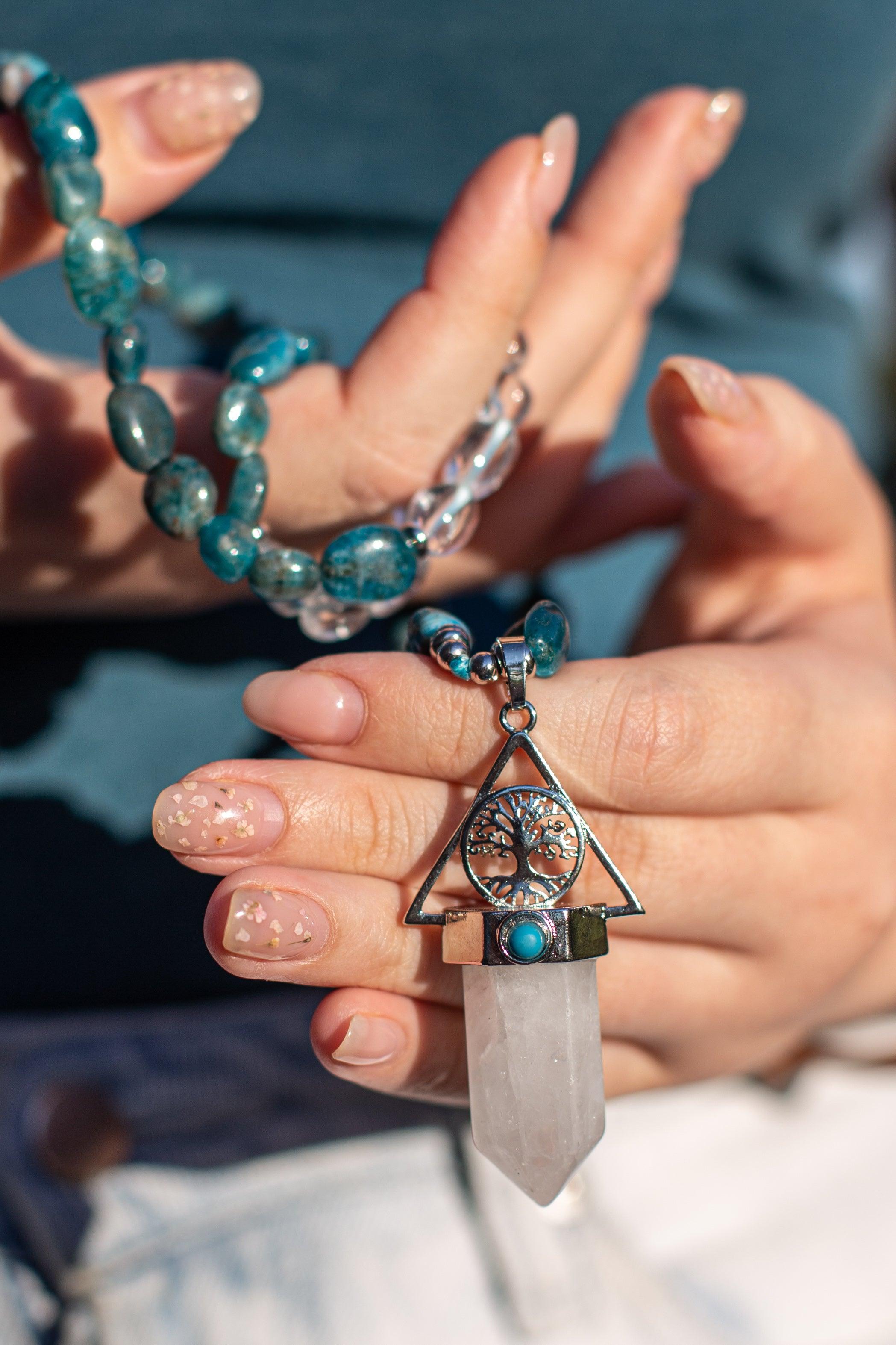 Collana "Notte Stellata" con Ciondolo in Quarzo e Perle Blu