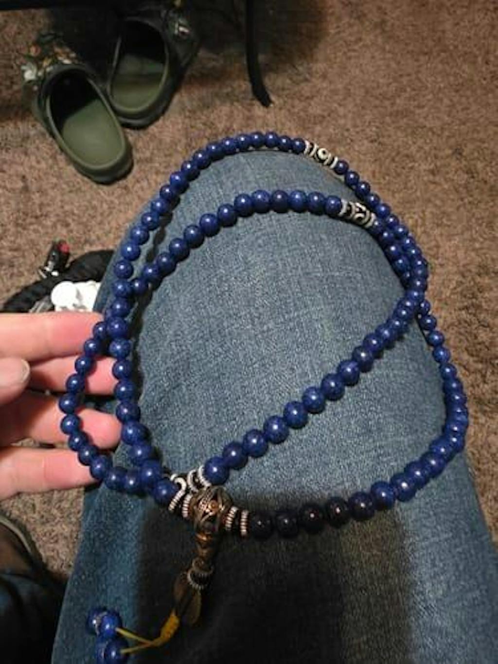 Ogni perla di lapislazzuli misura circa 8 mm.